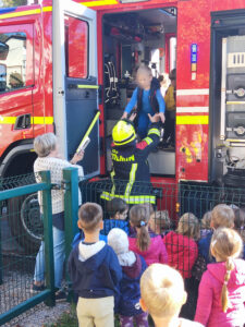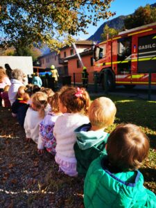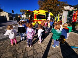 Na mirno torkovo dopoldne se je naenkrat zaslišal alarm, sledil pa mu je glasen tilu-lilu. O ne, le kaj se dogaja? Pred naš vrtec so se kar naenkrat pripeljali reševalci, policisti in gasilci. Iz cevi je začela brizgati voda. Nekaj je zagorelo, ali je to naš vrtec? Ne. Tudi letos je kot že vsako leto poprej potekala evakuacijska vaja. Po končani vaji so otroci imeli možnost pobližje pogledati intervencijska vozila. Za vrhunec ogleda vozil pa jih je pozdravil tudi policijski kuža. Otroci so se polni različnih vtisov zahvalili vsem udeležencem za lepo dogodivščino.