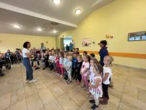 Ob dnevu Alzheimerjeve bolezni so otroci skupine Metuljček in Čebelica skupaj z društvom Spominčica Zgornjega Posočja sodelovali pri izvedbi kulturnega nastopa. Otroci so se predstavili s petjem (pesmi: Razposajenka, Rad imej, Gosenica, Čebela Adela) in gibalno ritmično izvedbo medvedjega plesa. Načrtovan je bil skupni »sprehod za spomin«, ki ga zaradi napovedanega dežja nismo izvedli. Preživeli smo lep dopoldan, se družili z uporabniki VDC-ja, Doma upokojencev in člani pevskega zbora Razor. Ob zvokih harmonike smo skupaj zaplesali.