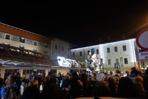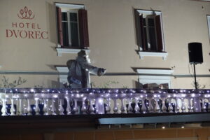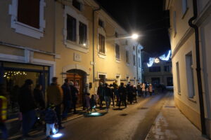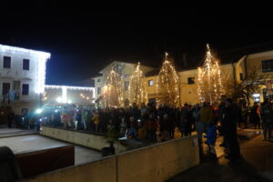 Otroci, starši in vzgojiteljice smo na igrišču vrtca zaman čakali na dedka Mraza. Da bi nas lažje našel, smo mu zapeli. Ni nas slišal, ker je že star in je imel gotovo svojo kučmo poveznjeno čez ušesa. Prižgali smo mu lučke na drevesih, da bi nas vsaj opazil. A dedka Mraza ni bilo od nikoder. Z lučkami smo se odpravili na iskalno akcijo po Tolminu. Na poti smo zaslišali klice na pomoč. Dedek Mraz je obtičal na terasi hotela Dvorec. Kdo bi mu lahko pomagal? Na pomoč so mu prihiteli gasilci in ga z novo lestvijo rešili hitreje, kot rečemo ho – ho – ho. Dedek Mraz je bil zelo hvaležen, otroci pa navdušeni.