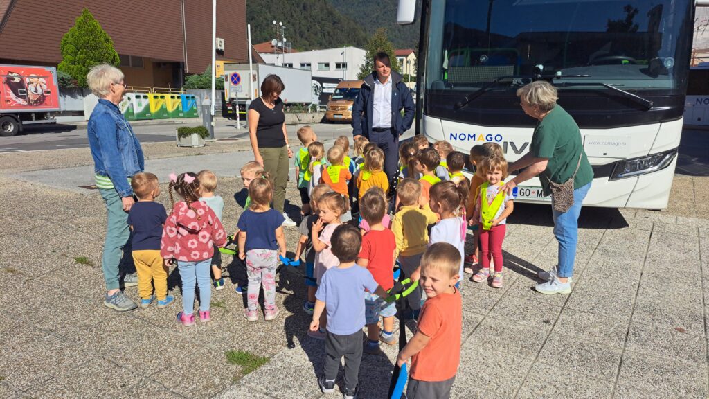 Ob tednu mobilnosti so otroci skupine Medvedek in Pikapolonica spoznavali različne načine potovanja iz kraja v kraj. S prijaznim šoferjem podjetja Nomago smo si ogledali avtobus, se vanj posedli, pohupali mimoidočim… Otroci so ugotovili, da je to okolju prijaznejši prevoz, saj gre v avtobus veliko več ljudi kot v avtomobil in se zrak zato manj onesnažuje. Žal jim je samo bilo, ker se niso mogli zapeljati, saj nismo imeli otroških sedežev, ki so za prevoz potrebni.
